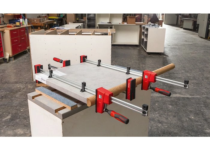 - sehr große, parallele Spannflächen mit 3 abnehmbaren Schutzkappen zum Schutz empfindlicher Oberflächen