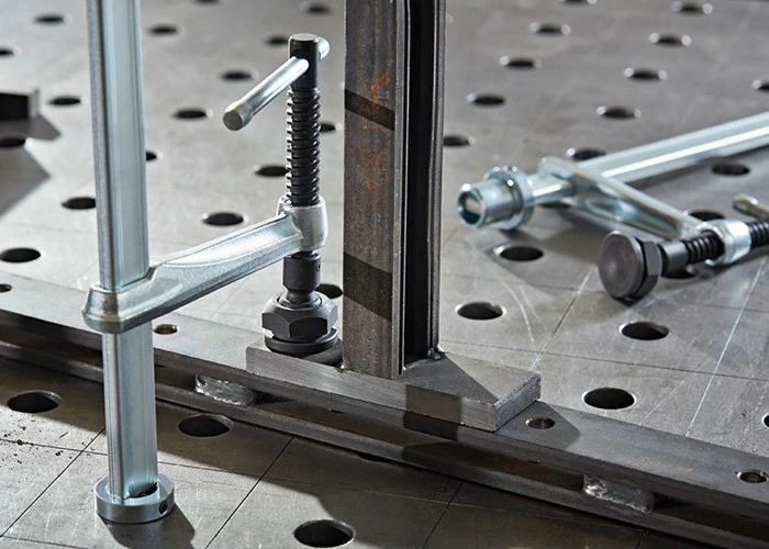 - Hochwertiger Knebelgriff mit abgerundeten Trapezgewindelspiel und werkzeuglos wechselbarer Druckplatte