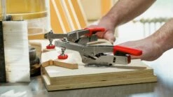 groĂźer ergonomischer Griff – Lochmuster der Grundplatten – Stellschrauben im Gelenk – automatische Anpassung der Spannweite --> Kniehebelspanner in konkurrenzloser Qualität