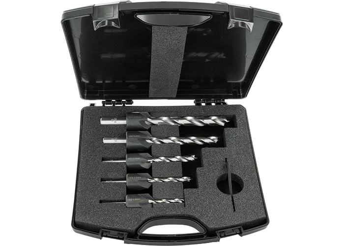 Das neue ENT Bohrer-Senker-Set enthält 5 Bohrer mit höhenverstellbaren Versenkern und passendem Sechskantschlüssel.