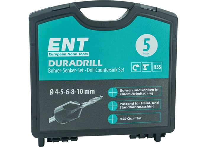 - Im Vergleich zum herkömmlichen Bohrer-Senker-Set sind in diesem Set Bohrer und Senker in ENT-Qualität enthalten