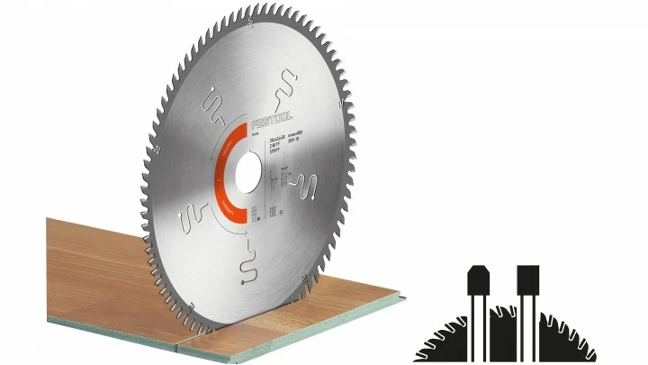 - Spezial-Sägeblatt zum Bearbeiten von beschichteten Platten, Laminat-Paneele, Melaminharzplatten, Mineralstoffen sowie phenolharzgebundenen Fasern und Gewebe