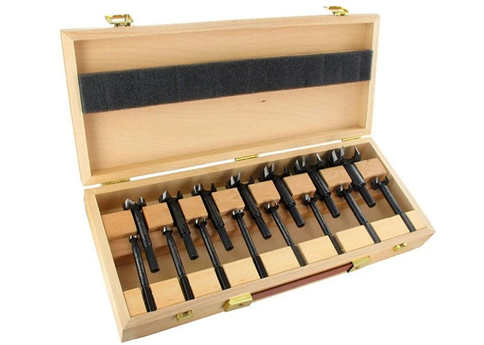 1x Forstnerbohrer WS Satz (Ø 10, 12, 15, 16, 18, 20, 22, 25, 26, 28, 30, 35, 40, 45, 50 mm), im Holzkasten