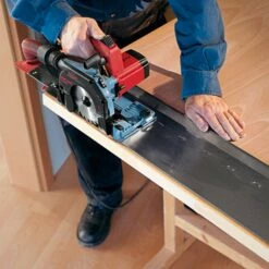 - Feste Verbindung durch Schnellverschluss von Handkreissäge mit KSS-Kappschiene. Der Rückholzug bringt die KSS300 nach jedem Schnitt wieder in die Ausgangsposition zurück