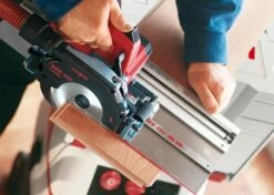 Extrem kompakt, extrem handlich und extrem geeignet zum Sägen von Paneelen. Inklusive starrer Kappschiene für Kappschnitte bis 300mm. Professionelle Ausstattung für Kapp- und Gehrungsschnitte.