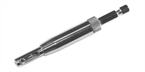 - Ausgestattet mit verfederter Führungshülse u. Kernbohrer in HSS mit Dachspitze